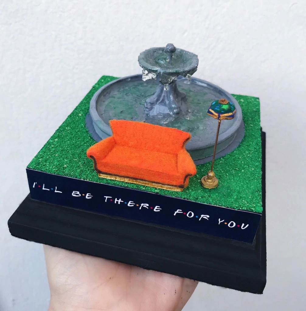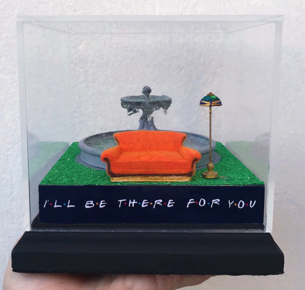 Esta miniatura da fonte de Friends, inspirada na abertura da série, traz toda a energia divertida e acolhedora dos amigos que todos amamos! Perfeita para fãs de Friends que querem ter um pedacinho da série – e de Nova York – na decoração. Com a frase "I'll be there for you" na base, ela também é o presente perfeito para aquela pessoa que está sempre ao seu lado! A peça vem acompanhada de um cubo acrílico removível, ideal para proteger sua miniatura e mantê-la segura.
