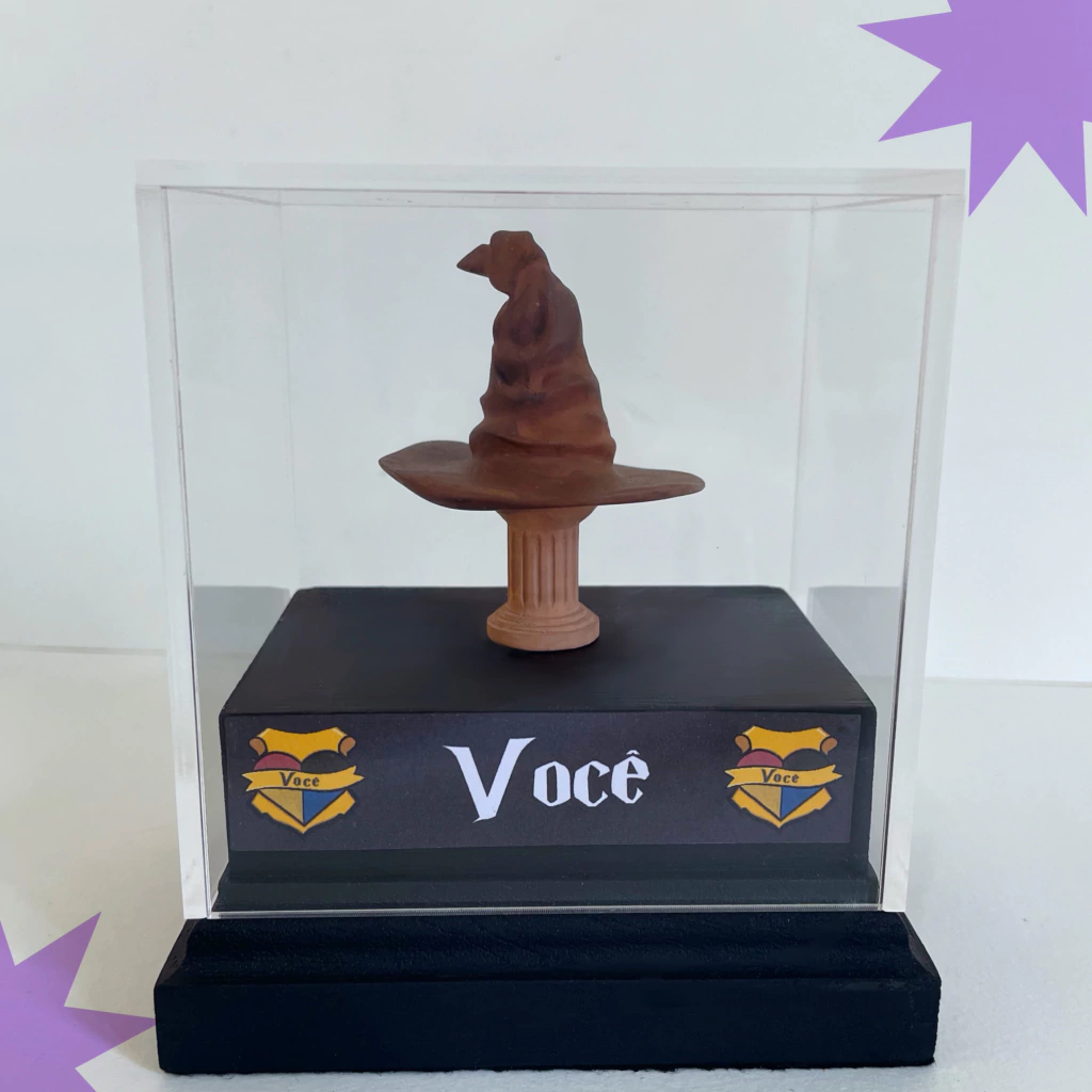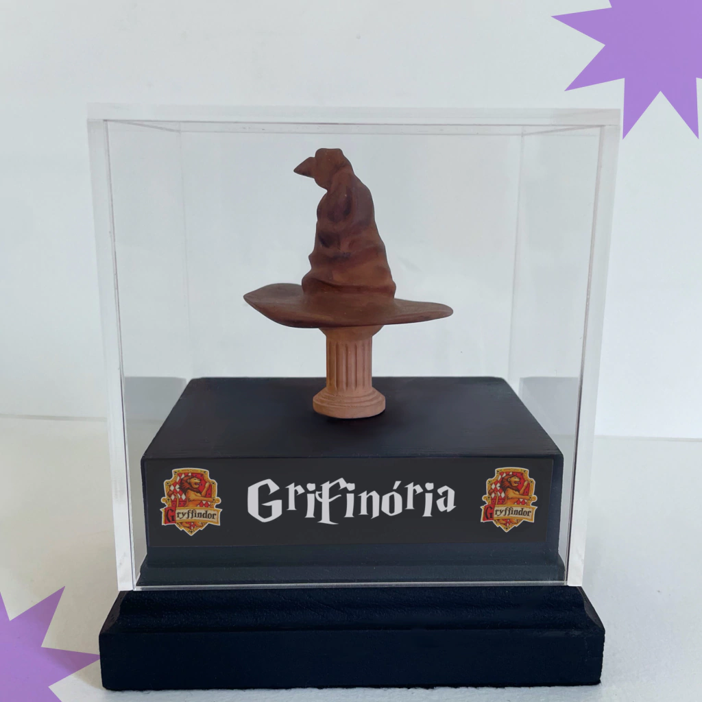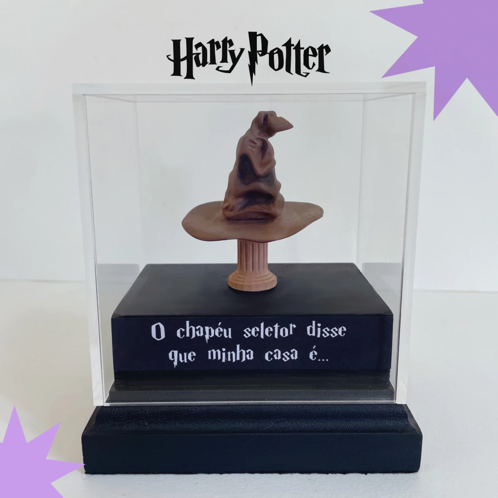 Esta miniatura do Chapéu Seletor vem com a frase “O chapéu seletor que minha casa é você”. Porque, se o Chapéu Seletor pode escolher a melhor casa para você, nós já sabemos que a melhor “casa” é ao lado de quem você ama! Um toque de magia e muito humor para celebrar o amor com a melhor escolha. Perfeita para quem sabe que, quando se trata de corações, a escolha certa é sempre a pessoa certa. A peça vem acompanhada de um cubo acrílico removível, ideal para proteger sua miniatura e mantê-la segura.