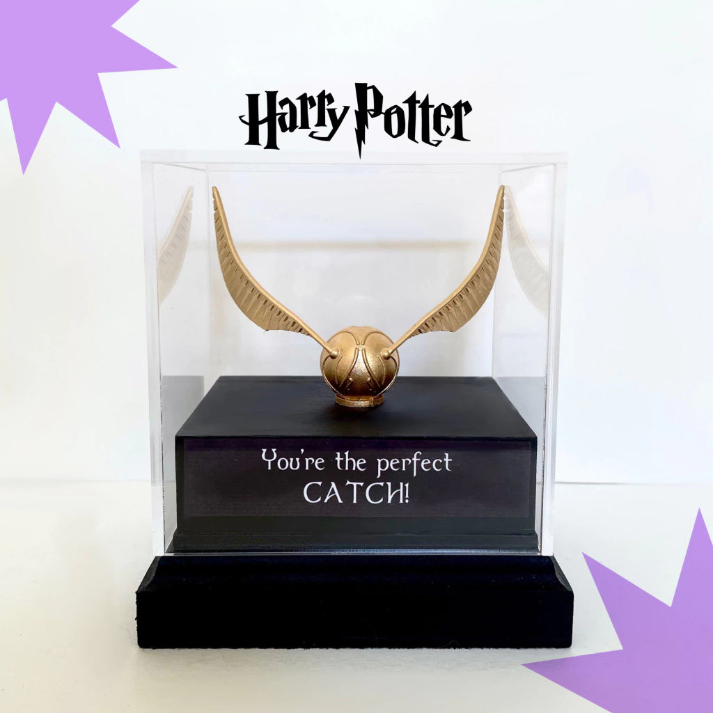 Esta miniatura do Pomo de Ouro traz toda a magia e mistério do universo de Harry Potter. Ela é perfeita para os fãs da série, especialmente para aqueles que sempre sonharam em ser um Seeker. Na base, a frase "You are the perfect catch" faz referência ao momento mais desejado do Quadribol, trazendo um toque de romance e diversão. Além disso, há a opção do logo de Harry Potter. Perfeita para decorar a estante ou para aquele presente especial, ideal para quem é fã da saga ou para quem merece ser o seu "perfect catch". A peça vem acompanhada de um cubo acrílico removível, ideal para proteger sua miniatura e mantê-la segura.