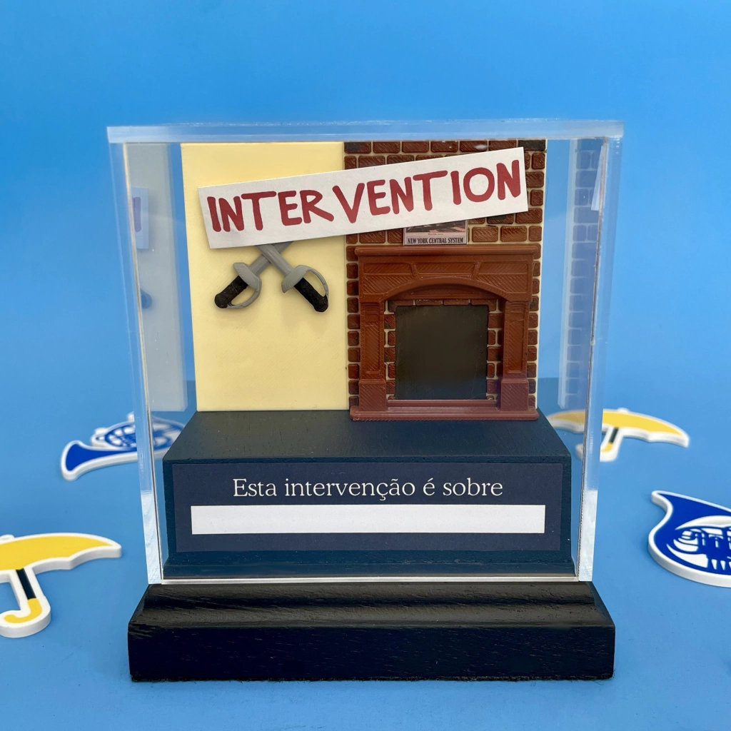 Esta miniatura inspirada na clássica ‘Intervention’ vem com um espaço em branco para que você possa personalizar com o motivo da intervenção. Perfeita para dar de presente àquele amigo que precisa de uma intervenção ‘urgente’ e bem-humorada. A peça vem acompanhada de um cubo acrílico removível, ideal para proteger sua miniatura e mantê-la segura.