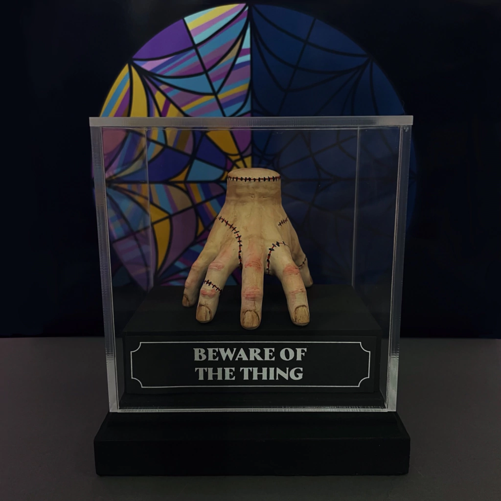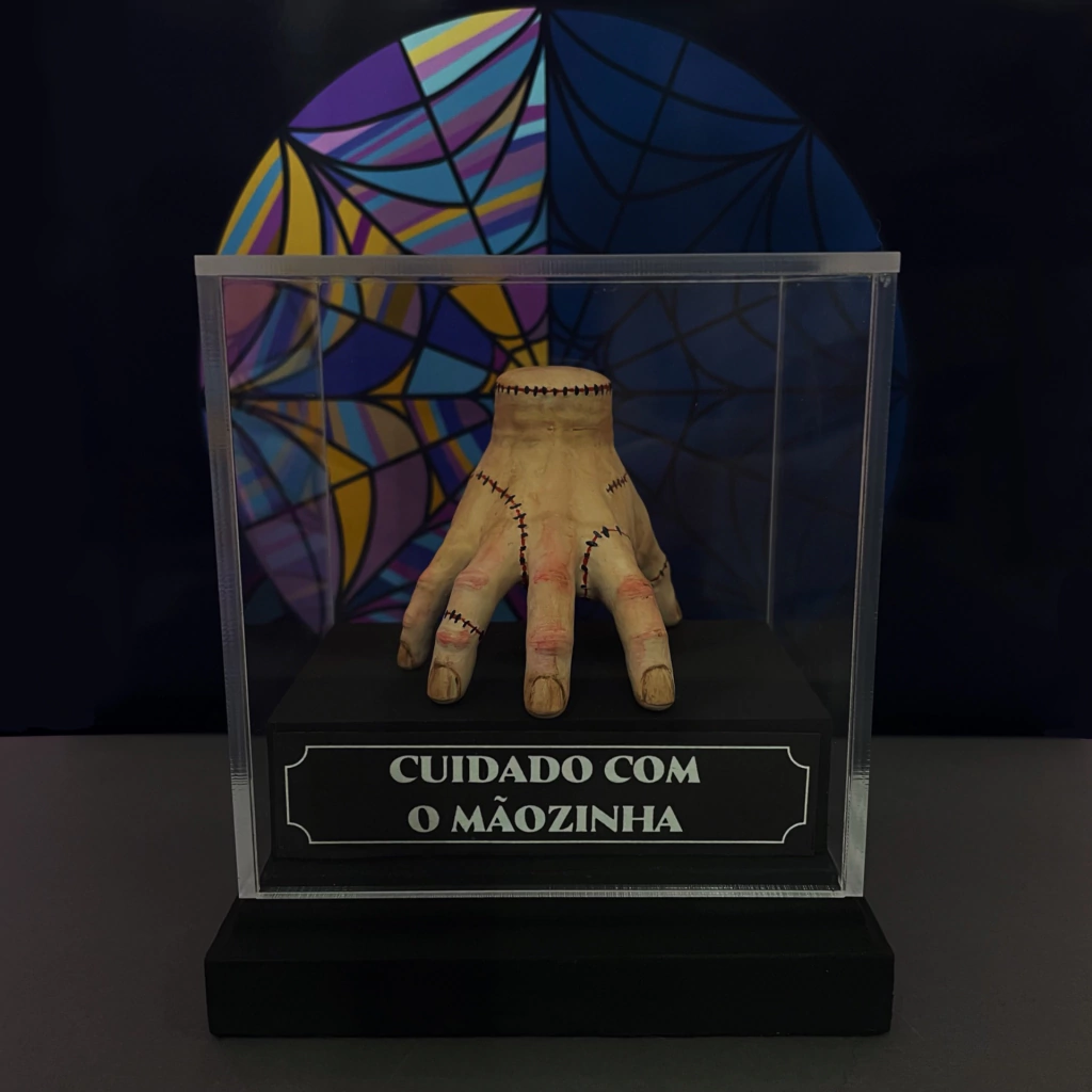 Esta miniatura traz o inconfundível Maozinha da Família Addams (e também da série Wandinha), sempre pronta para causar um susto… ou dar uma mãozinha! Com a frase "CUIDADO COM O MÃOZINHA" na base, essa peça é perfeita para quem adora um toque de humor sombrio e um pouco de mistério. Ideal para dar aquele charme excêntrico à sua decoração — mas se prepare, ela pode acabar te "pegando" de surpresa! A peça vem acompanhada de um cubo acrílico removível, ideal para proteger sua miniatura e mantê-la segura.