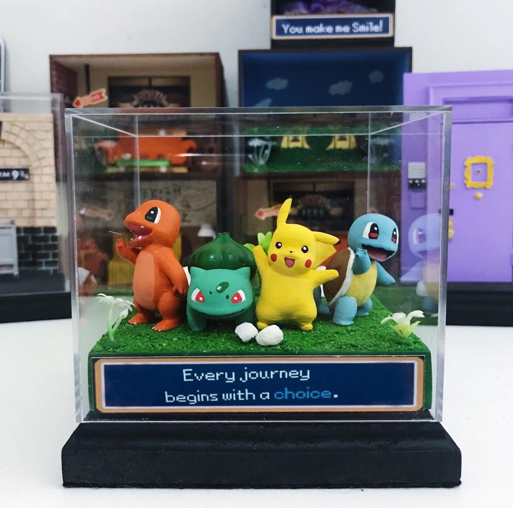 Esta miniatura traz os três Pokémon iniciais – Bulbasaur, Squirtle e Charmander – ao lado do Pikachu, todos prontos para te lembrar que toda jornada começa com uma escolha. Afinal, quem nunca ficou na dúvida entre qual Pokémon escolher? Perfeita para os fãs de Pokémon e para aqueles que acreditam que as melhores aventuras começam com uma boa escolha (ou talvez um pouco de indecisão)! A peça vem acompanhada de um cubo acrílico removível, ideal para proteger sua miniatura e mantê-la segura.