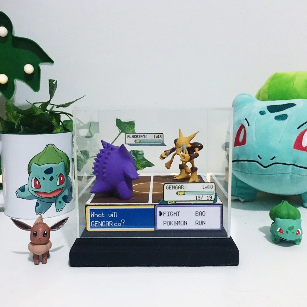 Prepare-se para a batalha mais emocionante do ginásio com Gengar e Alakazam! Uma miniatura que captura o confronto entre o astuto Gengar, mestre das sombras, e o imbatível Alakazam, com seu poder psíquico inigualável. Perfeita para fãs de Pokémon que adoram ver as mentes mais brilhantes (e mais sombrias) em ação. A peça vem acompanhada de um cubo acrílico removível, ideal para proteger sua miniatura e mantê-la segura.