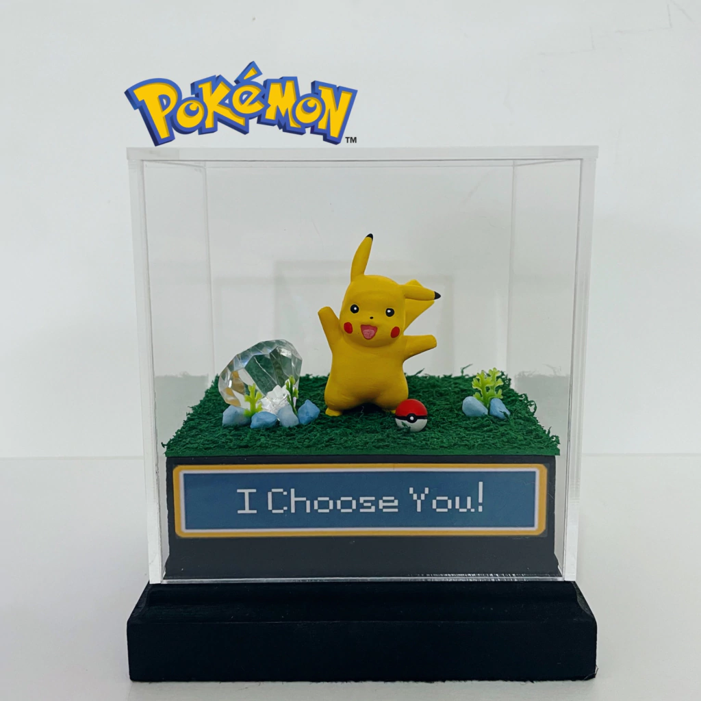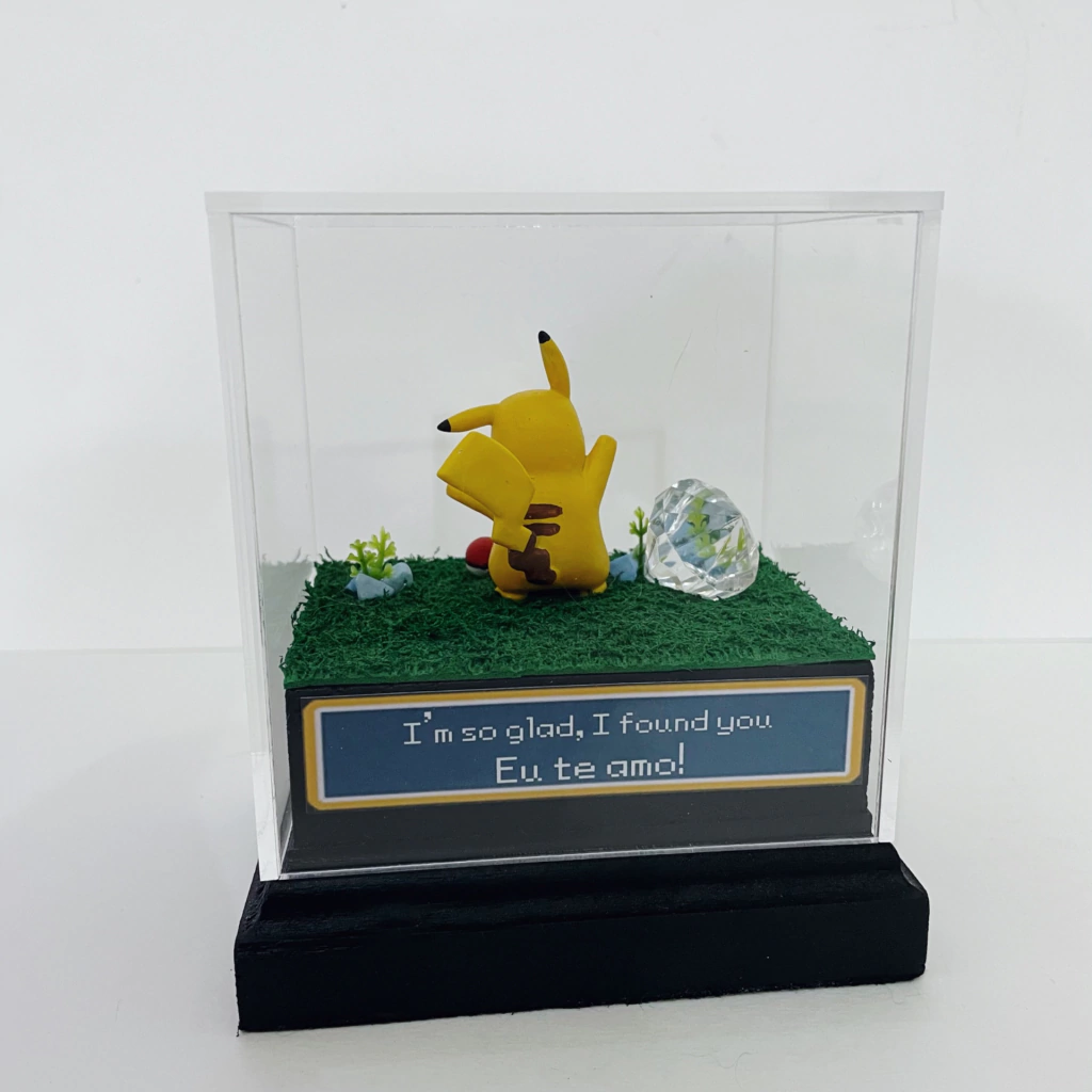 Esta miniatura do Pikachu com a frase "I Choose You" é uma forma fofa e única de expressar seus sentimentos! Uma maneira divertida de dizer "você é a minha escolha". A peça vem acompanhada de um cubo acrílico removível, ideal para proteger sua miniatura e mantê-la segura.